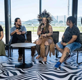 Durante o evento, nos reunimos em um grande círculo, compartilhando saberes e discutindo temas importantes para o nosso futuro. Falamos sobre a necessidade de hackear o sistema , de ocupar espaços com nossa diversidade e de deixar nossa marca, fortalecendo uns aos outros com o poder do conhecimento compartilhado. Em um ambiente aberto e acolhedor, discutimos como nossas histórias e nossas vozes podem e devem invadir ambientes e influenciar com propósito e verdade.
